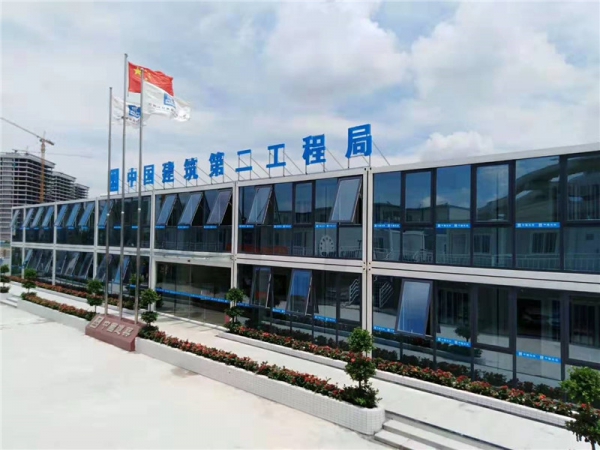 【項目名稱】:中鐵大橋局新城立交EPC項目經理部 【項目地點】:深圳寶安區新城檢查站旁 【使用產品】:東楚打包箱、東楚快拼箱、東楚豪華活動板房...